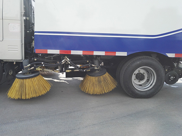 10、降尘装置:在灰尘较多的路面,为了防止扬尘现象发生,驾驶室前下方可选装喷水装置,喷水范围为扫盘旋转位置,从而避免扬尘。