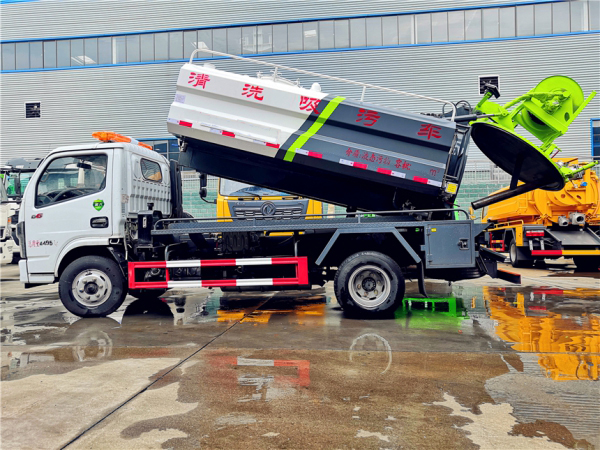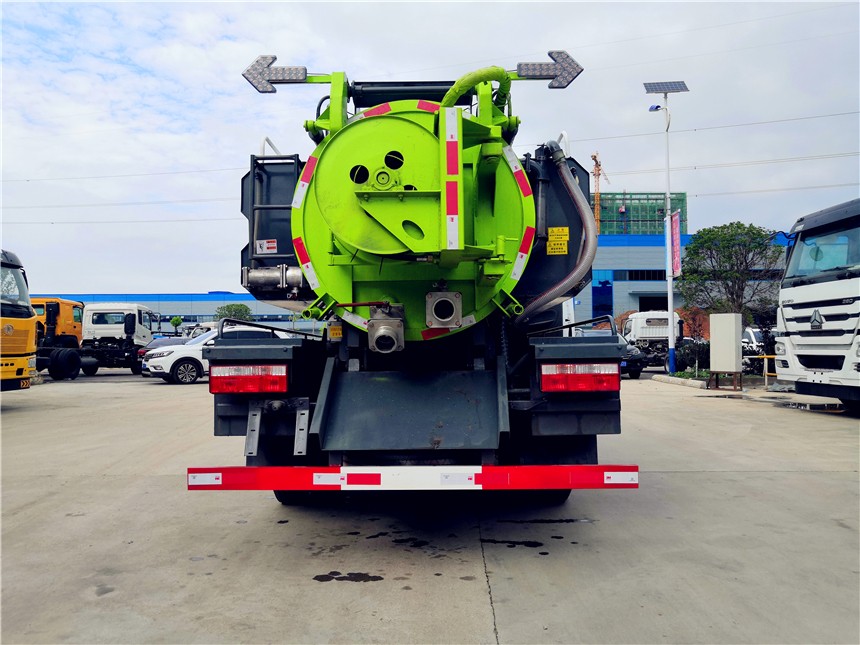 吸污部分:3.8方污罐,罐体5mmQ235优质碳钢,配淄博SK-9水循环泵,8米吸污管一根,进气管加过滤网,防溢阀加高,后盖卡扣锁紧,前视污亮管,后尾部加装1个力拓牌**mm的球阀均带出口,罐体带举升功能,后门带液压开启。