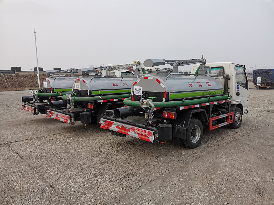 上装配置:罐体容积约3立方,武钢Q235自动焊接,壁厚5mm,封头6mm,标配5吨油泵真空泵,吸力大、吸程远,可自吸自排。标配防溢阀,视粪窗,罐后自流口1个,罐旁洗手装置,濯体顶吊杆270°旋转,带8米吸粪管1根。