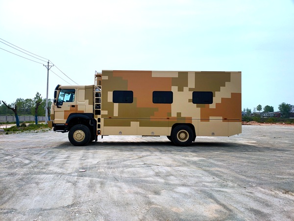 由程力打造的四驱12人宿营车今天完工,准备发车,该车采用重汽豪沃4×4越野底盘、加装宿营方舱、宿营**、空气调节系统、影视系统、水路系统、电气系统等组成。能够满足12人的住宿、就餐、阅读。具有舒适的就寝环境及齐全的卫生**。